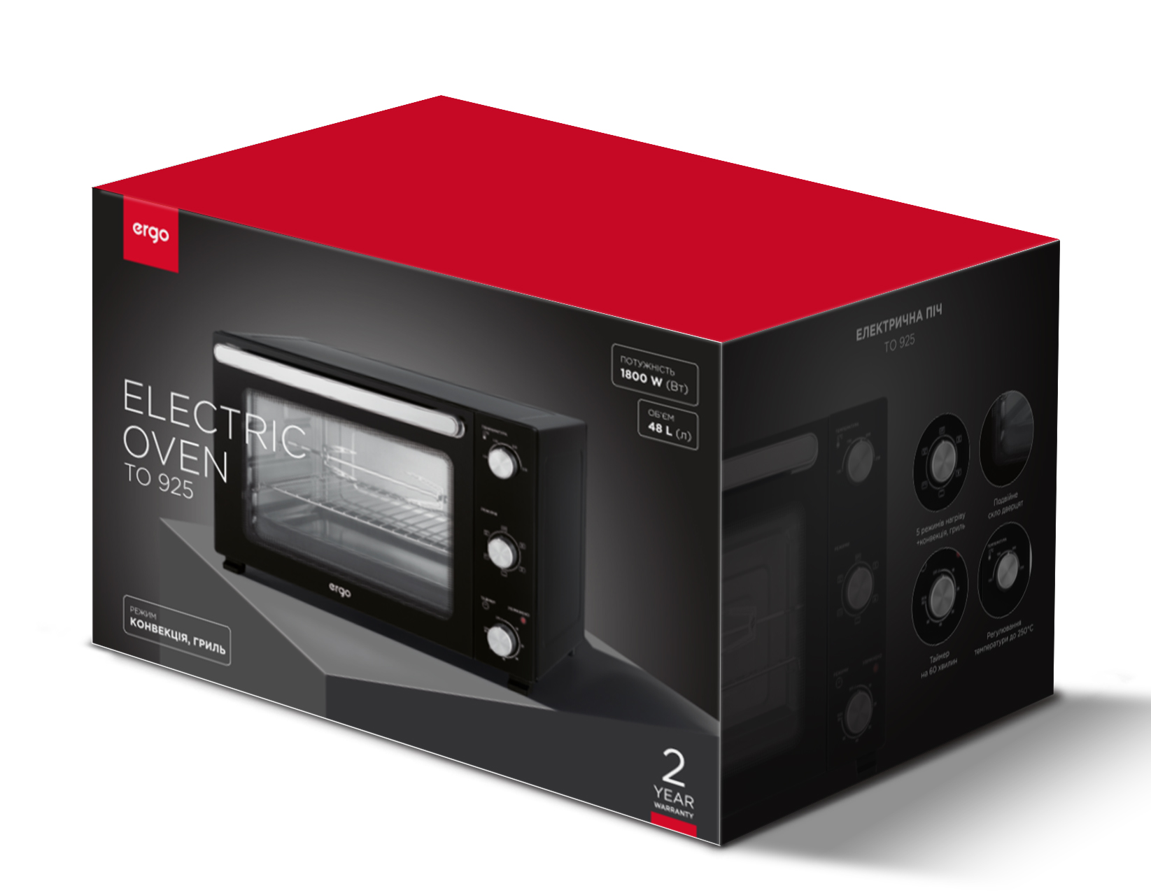 | Equipment | electric oven, baking sheet, baking tray holder, tray for crumbs and fat, grill rack, instructions, warranty card |